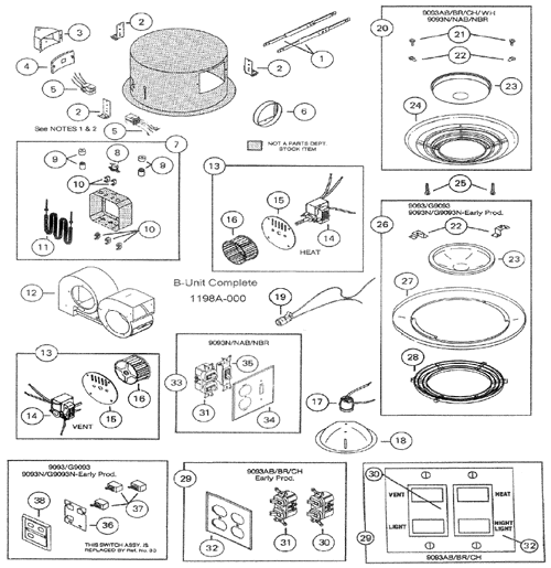 NuTone 9093FWH Fluorescent Heat-A-Ventlite Parts